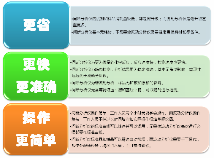 以濕化學反應為基礎(chǔ)的自動化分析儀中,市場上大致有三種模式的化學分析儀:流動注射分析儀(無氣泡),片斷流化學分析儀(加入氣泡),以及間斷分析儀,其中間斷分析儀是自動化程度最高的分析儀。