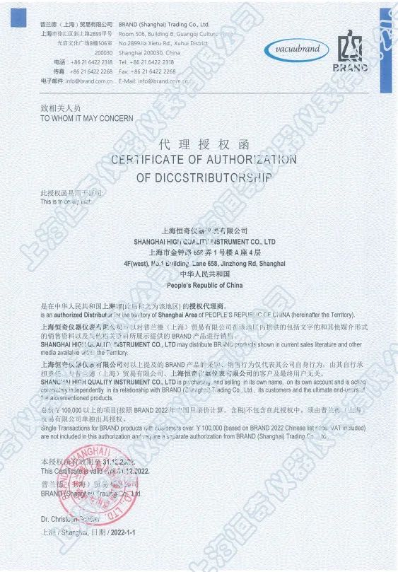 上海恒奇儀器儀表有限公司多年來一直是BRAND優(yōu)秀授權(quán)經(jīng)銷商,為客戶提供專業(yè)的服務(wù),合理的價格,高效的售后服務(wù),良好的信譽(yù)與廣大客戶建立了長期友好的合作伙伴關(guān)系。