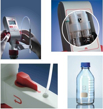 用VITLAB “continuous”數(shù)字滴定器,你可以進(jìn)行連續(xù)的滴定并得到可靠的結(jié)果,為您在這個過程中節(jié)省大量時間。獲得專利的雙活塞泵設(shè)計使得溶液得以持續(xù)測量無需重復(fù)灌裝。此外,這種創(chuàng)新技術(shù)大大提高了安全性,它的緊湊型結(jié)構(gòu)和低重心構(gòu)造極大地降低了液體泄露的風(fēng)險。排液管的長度和高度都可以調(diào)節(jié),使其可適用于各種高度的瓶子。獲得專利的回流閥設(shè)計具有兩大優(yōu)點:防止貴重試劑的損失和液體飛濺。另外還具有簡單易用的校準(zhǔn)功能。誤差全部都在德國DIN EN ISO 8665-3標(biāo)準(zhǔn)要求的范圍內(nèi)。