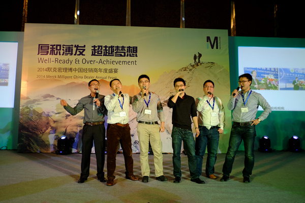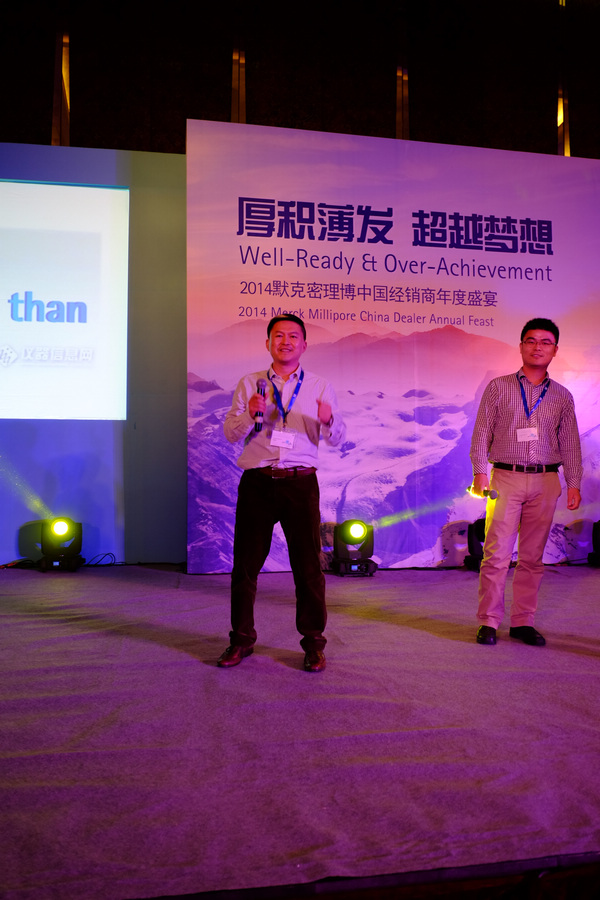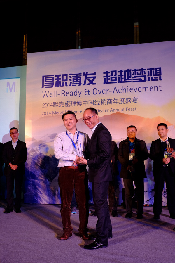 熱烈祝賀恒奇儀器再次榮獲MERCK密理博最佳銷售業(yè)績獎2014年度MERCK密理博經銷商大會地點:廈門國際會議中心酒店時間:2014年3月7日會議過程1、全體經銷商大會包括部門業(yè)務介紹 2、各業(yè)務部門(BI,BM,LE, LW,BPS,PCS)經銷商分會3、及默克密理博主力市場之產品布局介紹 總經理左克唯接受MERCK密理博大中國區(qū)總裁 Ray Shin頒獎總經理左克唯代表中區(qū)代理商表演節(jié)目2014年獎杯