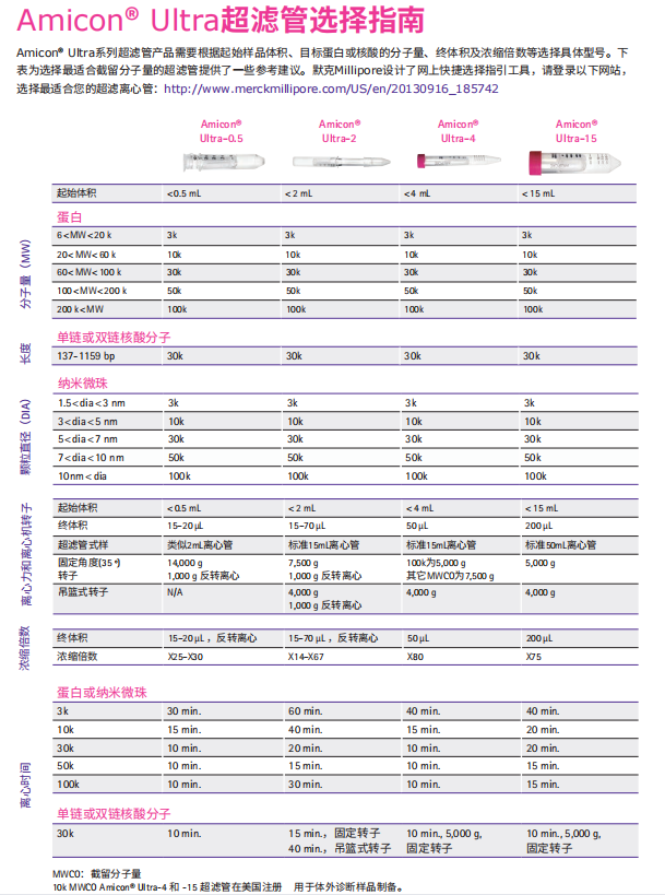 • Amicon Ultra超濾管滿足從0.5-15mL樣本的處理