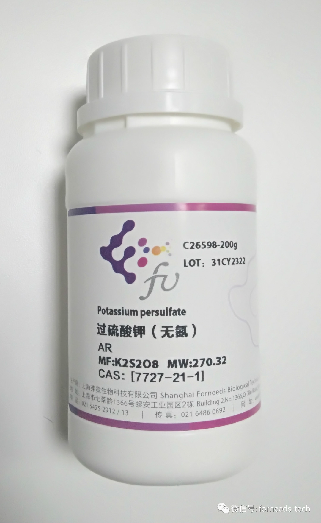 弗霓提供符合此國(guó)標(biāo)使用的過硫酸鉀無氮AR試劑,此產(chǎn)品區(qū)別于市售其他產(chǎn)品,不使用過硫酸銨為原料,原料及過程中都避免了N元素的摻入,保證出結(jié)果,無需耗時(shí)費(fèi)力的重結(jié)晶提純,無需各個(gè)環(huán)節(jié)找失敗原因,開瓶直接使用。
