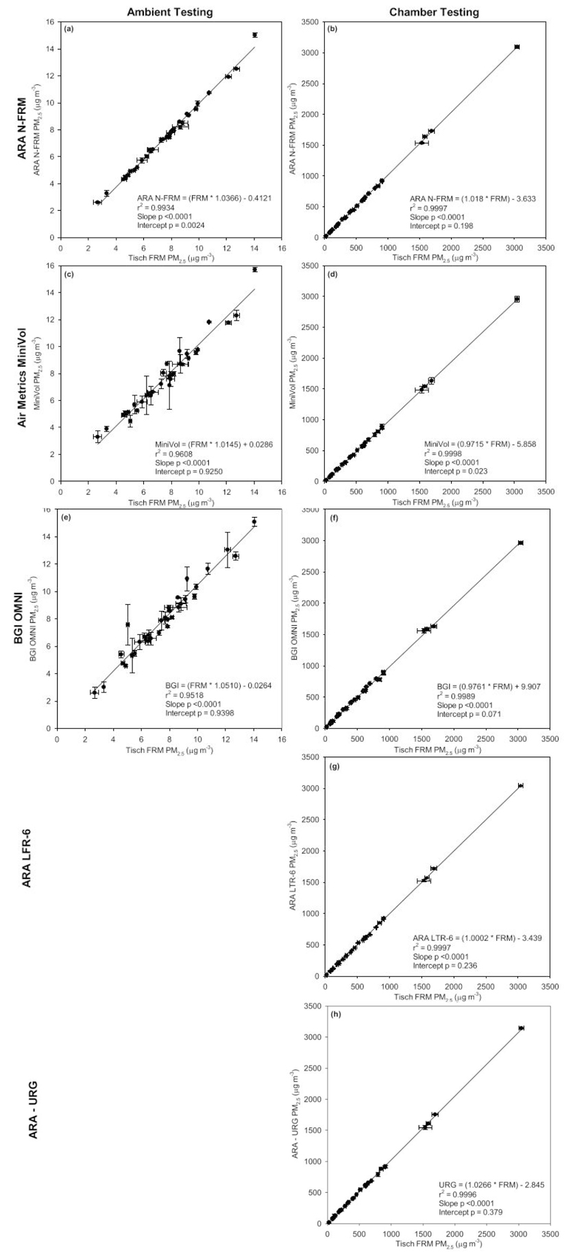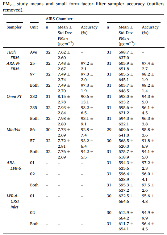 本研究中的所有取樣器在測定環(huán)境和煙霧環(huán)境中的PM2.5總濃度方面表現(xiàn)良好,ARA N-FRM更是可以達(dá)到EPA PM2.5 FRM質(zhì)量測量精度性能的標(biāo)準(zhǔn)。此外,與傳統(tǒng)的FRM采樣器相比,其成本更低,部署更方便,可以有效的用于科學(xué)監(jiān)管PM2.5濃度相關(guān)數(shù)據(jù)采集的工作。