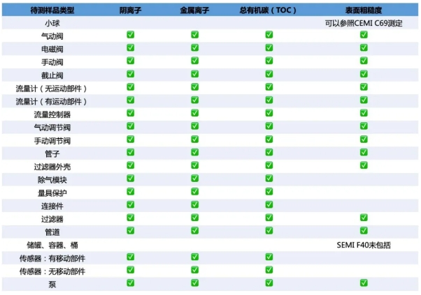 根據(jù)標準SEMI F57:用于超純水和液態(tài)化學(xué)品輸送系統(tǒng)的聚合物材料及組件的規(guī)范文件要求,評價半導(dǎo)體輸送管道的性能,鑒于浸泡液的成分多樣性,需要儀器具有極強的抗干擾能力,同時對于潔凈與污染的評估需求,需要儀器既具有高靈敏度,又具有寬范圍的能力。