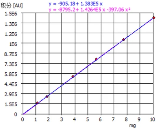在測試過程中,同樣以碳酸鈣為標(biāo)樣繪制標(biāo)準(zhǔn)曲線,相關(guān)系數(shù)達(dá)到 0.99947 ,線性良好。
