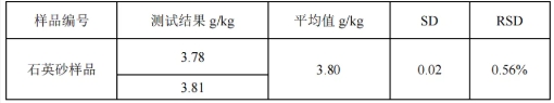 表 4-4 高純石英砂樣品碳測試結(jié)果
