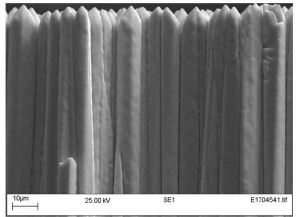 針狀碘化銫閃爍體的掃描電鏡圖像:針狀晶體具有限光作用,能夠有效降低光的散射,進一步提高空間分辨率