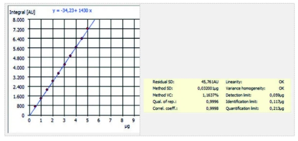 采用鄰苯二甲酸氫鉀配置標(biāo)準(zhǔn)溶液,儀器自動吸取不同進(jìn)樣體積繪制校正曲線: